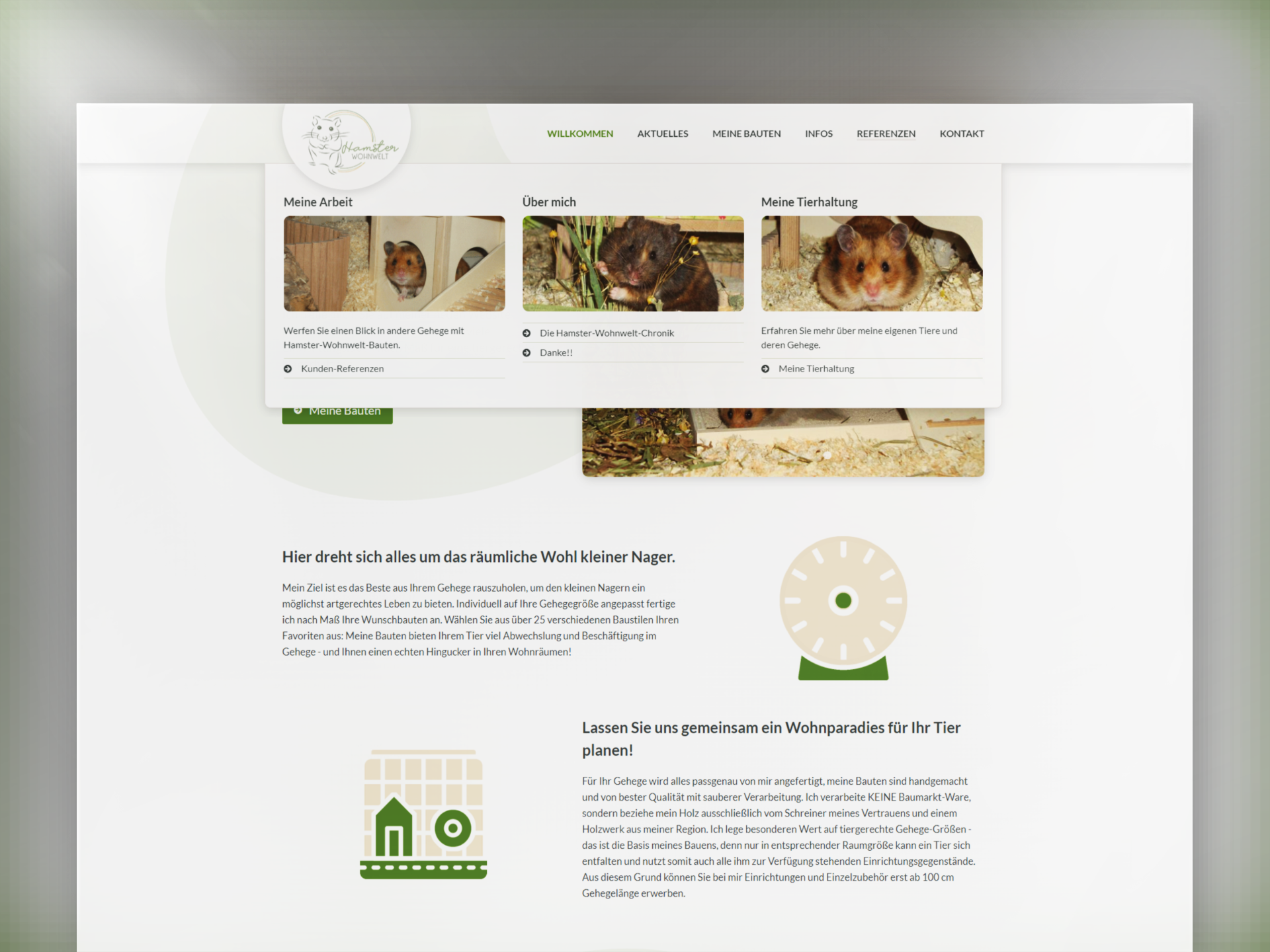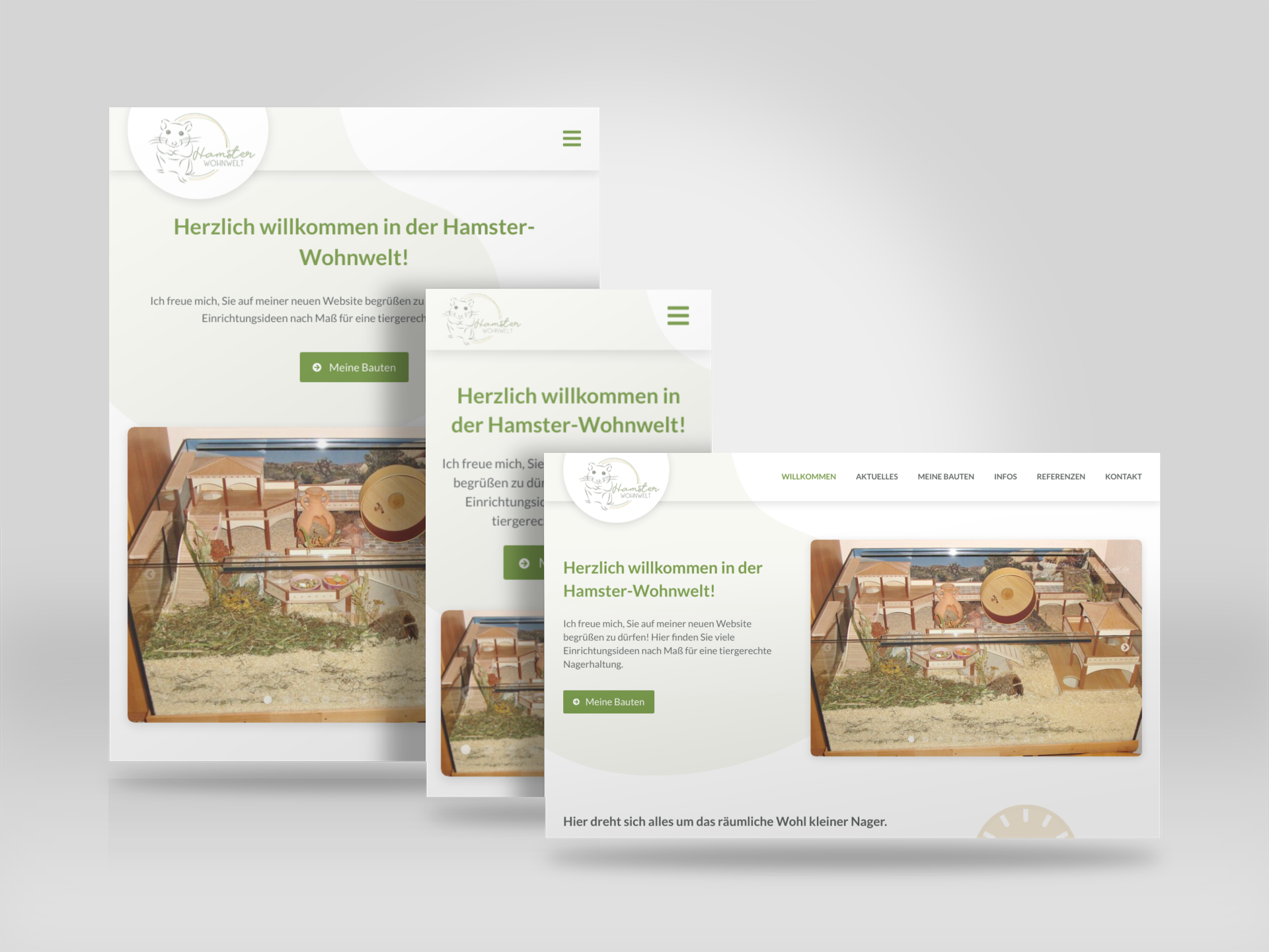 Andrea Probst stellt Einrichtungen nach Maß für Hamstergehege her. Sie hatte bereits eine Website mit sehr viel Bild- und Textmaterial, die aber in die Jahre gekommen und nicht mobilfreundlich war.